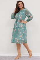 Комфортное платье, состоящее из лифа и юбки, имитирующее костюм-двойку. Лиф прямого кроя с втачным рукавом три четверти. Горловина обработана рубашечным воротником с отрезной стойкой. Застёжка центральная на пуговицы. По талии собрано на резинку. Юбка А-силуэта.