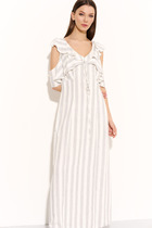 Платье трапецевидного силуэта без рукавов длиной миди. Вырез горловины круглой формы. Спинка со средним швом. Застежка в среднем шве спинки на пуговицу и петлю.