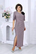 Платье макси прямого силуэта с округлым вырезом, отрезное по линии талии. Рукав немного приспущен, нижний край рукавов оформлен резинкой. Изделие на подкладке.