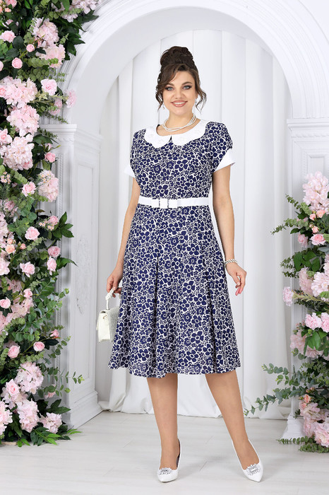 Праздничное платье NINELE CHIC - классика белорусского трикотажа. Платье выполнено из шифона с фактурой рубчик на хлопковой подкладке, благодаря чему модель выглядит легкой и воздушной, но при этом остается комфортной и приятной к телу. Изящный цветочный принт, аккуратный белый воротник и рукава создают утончённый образ, который отлично подойдет для праздника, торжества или летнего мероприятия.