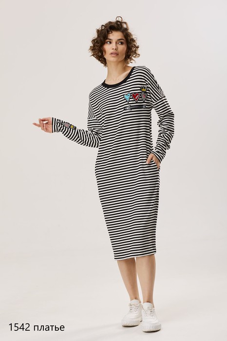 Стильное трикотажное женское платье из мягкого трикотажного полотна, модель полуприлегающего силуэта, со спущенным рукавом. В боковых швах карманы. Перед и рукав декорированы дизайнерской вышивкой.