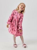 Платье для девочки из натуральной хлопковой ткани кулирки. Силуэт расширенный от линии груди, спереди и сзади подрез, нижняя часть со сборкой. Спереди пришита широкая рюша с обметанными краями, рукав втачной короткий, горловина окантована, сзади капелька с пуговкой.