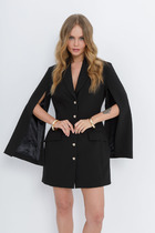 Нарядное платье свободного силуэта выполнено из сетки с бархатным напылением. Перед и спинка платья целые. Платье с ассиметричным фигурным отрезным низом с небольшой сборкой по шву притачивания. Спинка длиннее переда на 12 см. Овальный вырез горловины переда и спинки обработан настрочной окантовкой. Платье с удлиненной линией плеча, рукав втачной прямой. Длина рукава от горловины в 48 р-ре – 43 см. в 58 р-ре – 45 см., ширина рукава по низу в 48 р-ре – 36 см. в 58 р-ре – 42 см. Платье с подкладом. Подклад выполнен отдельно от платья, из тонкого эластичного атласного полотна. Подклад на бретелях, длина бретелей регулируется. Длина подклада без бретелей в 48 р-ре – 80 см. в 58 р-ре –В В 84 см. Платье без застежек. Длина изделия по спинке в 48 р-ре – 112 см., в 58 р-ре -В В 116 см.