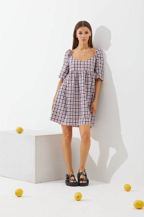 Платье женское, выполнено из плательной ткани с дизайном в клетку.