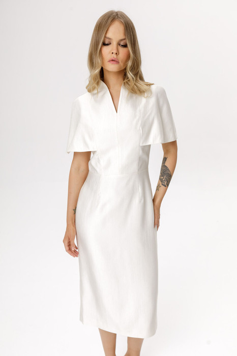 Платье-кейп длины миди с цельнокроенной пелериной.