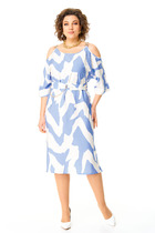 Стильное платье прилегающего силуэта, отрезное по линии талии, выполнено из экокожи и трикотажного полотна. Горловина округлой формы. Длинные втачные рукава. Юбка спереди с подрезом на металлическую молнию, с возможностью регулировать высоту разреза. Застёжка по спинке в среднем шве на потайную молнию.
