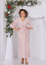 Платье предназначено для повседневной носки. Платье женское, полуприлегающего силуэта, длиной за колено. Перед с 2-мя нагрудными вытачками, с цельнокроенной вертикальной планкой шириной 3,5 см, закреплённой к переду 6-ю пришивными декоротивными пуговицами; перед с втачной планкой из лтделочной ткани. Спинка с 2-мя таллиевыми вытачками, с втачной металлической молнией, с втачной планкой из отделочной ткани по горловине. Платье с карманами в боковых швах. Рукав втачной, одношовный с притачной манжетой из отделочной ткани, рукав длиной 3/4. Платье с плечевыми накладками. Длина спинки платья 103,5 см, длина рукава 47 см.