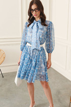 Двубортное платье из костюмной ткани на подкладке. По переду платья - нагрудные вытачки, по спинке - рельефы. Бочки, смещенные к переду, делают удобным расположение карманов в швах. Воротник - отложными лацканами пиджачного типа. Рукава - двухшовные, длинные, со шлицей и 2 пуговицами. Жакет застегивается на 2 основные пуговицы, 1 потайную, остальные пуговицы несут декоративный характер. Платье украшает цветок ручной работы.