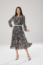 Нежное, женственное платье свободного силуэта, зауженное к низу. На уровне линии талии регулируется кулисой. Вырез горловины V-образный. Рукав расширенный к низу на резинке, с кружевной вставкой и рюшем. Нижняя часть платья из кружевной ткани. Платье станет идеальным вариантом к любому случаю.
