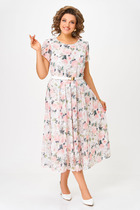 Платье трикотажное прямого кроя, длиной миди, с втачным рукавом. Линия плеча спущена. Вырез горловины округлый. В левом боковом шве разрез. Рукав длинный. По линии талии съемный ремень, регулируется по фигуре, подчеркивает талию и добавляет образу оригинальность и изюминку.
