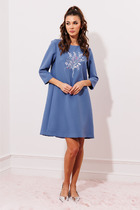Платье женское свободного А-силуэта выполнено на подкладке из трикотажной ткани, с втачным рукавом. Горловина округлой формы. Верхняя часть платья отлетная, что придает изысканность платью. По переду расположены нагрудные вытачки, по спинке застежка на петлю и пуговицу в форме капельки, обеспечивающей идеальную посадку. Особенный акцент платья – это три ряда воланов по низу, добавляющие объем и изюминку. Нижний край воланов и рукавов не обработан.