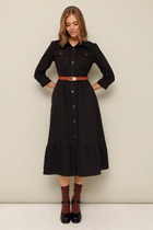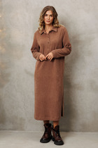 Платье женское из трикотажного полотна, станет идеальным выбором для создания стильного и комфортного образа. Платье полуприлегающего силуэта с втачным рукавом. По горловине отложной воротник. Застежка на петли и пуговицы по планке переда. Спинка цельная. В боковых швах обработаны карманы. Рукав длиной 7/8, по низу рукава отложная манжета.