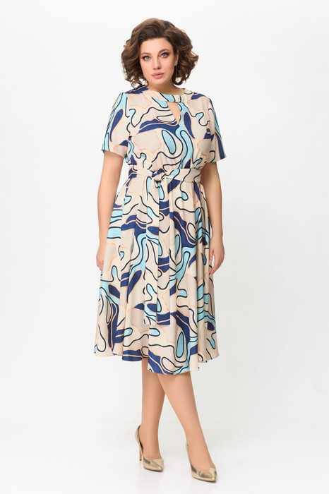 Платье Swallow 721 светлый бежевый+принт абстракция