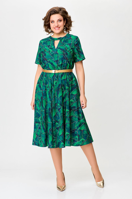 Платье из тонкого текстиля Х-образного силуэта, отрезное по линии талии.