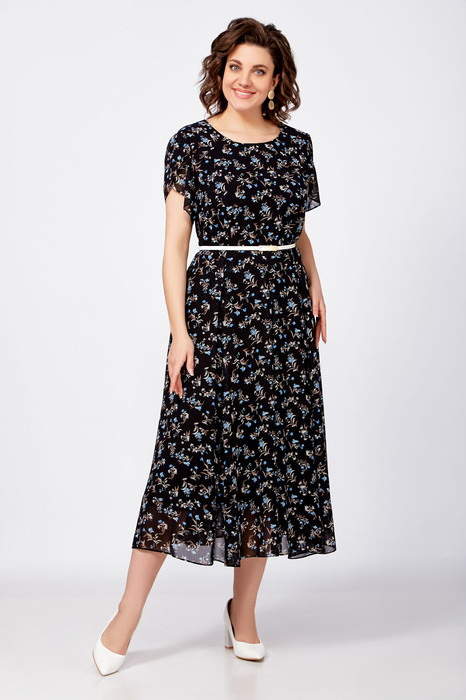 Платье Swallow 814 черный+бежево-голубые цветы