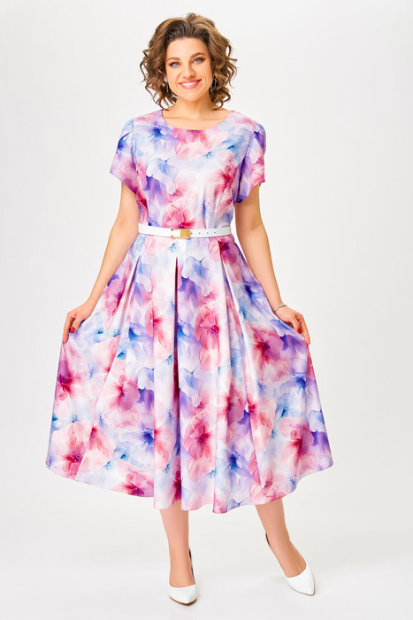 Платье женское из мягкой вискозной ткани, Х-образного силуэта с полуприлегающим лифом. Платье отрезное по линии талии. По переду лифа отрезные рельефы, по спинке талиевые выточки. Юбка расклешённая из шести клиньев со встречными складками по линии талии. В среднем шве спинки застёжка на потайную тесьму-молнию. Рукав втачной покроя тюльпан, длина рукава 15 см.