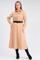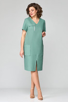 Платье женское, полуприлегающего силуэта с рукавом длиной 7/8. Рукав выполнен из отделочной ткани (сетка), фантазийной формы. По верху рукава сборка. Низ так же присобран на узкую резинку. По переду нагрудные и талевые вытачки. Перед платья, сверху задекорирован вышивкой. Вырез горловины круглой формы. По спинке средний шов и талевые вытачки. Застежка в шве на потайную "молнию". По низу разрез. Длина платья по спинке 48-50 93 см, 52-56 96 см.