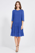 Платье отрезное чуть выше линии талии. На переде линия подреза фигурная, с заложенными парными складками под грудью. Спинка и перед со средними швами в верхней части. Горловина V-образной формы. Рукав втачной, длиной ниже локтя, на манжете и с завязывающейся патой. Отделочная фурнитура может отличаться от представленной на фото.