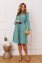 Красивое платье приталенного силуэта из легкой ткани - ниагара. Горловина оформлена отложным воротником на стойке. По переду выполнена планка с застежкой на петли и пуговицы. Длинный втачной рукав, оканчивается притачной манжетой. В боковых швах функциональные карманы. Модель отрезная по линии талии, присобрана на эластичную резинку. Тканевый пояс дополнительно акцентирует талию. Модель прекрасно дополнит ваш гардероб.