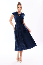 Платье длины миди выполнено из мягкой меланжевой пряжи с кашемиром. Модель прямого силуэта дополнена одиночным высоким боковым разрезом. Вязаный кант вертикально проходящий по всему изделию, визуально стройнит и вытягивает силуэт. При желании можно подчеркнуть линию талии, используя контрастный пояс.