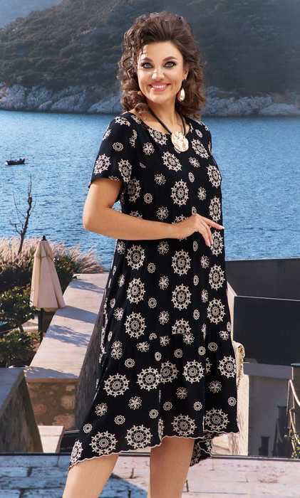 Совместные покупки Уфа Женская одежда Платья — Платье Vittoria Queen 24663 черный+молочный принт