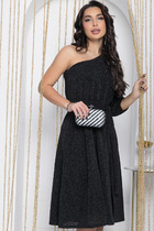 Платье прилегающего силуэта, с округлой формой горловины с ассиметричным подрезом по талии и небольшим напуском. Рукав в платье ассиметричный (левый-цельнокроеный, правый со спущенный проймой через подрез по лифу платья). От подреза притачная баска, юбка платья прямая с разрезом в боковом шве. В боковом шве платья застёжка на тесьму-молнию.Длина платья 135 см. Длина рукава левого 39 см (р.50-54), 40 см (р.56-60). Длина рукава правого 52 см (р.50-54), 53 см (р.56-60)
