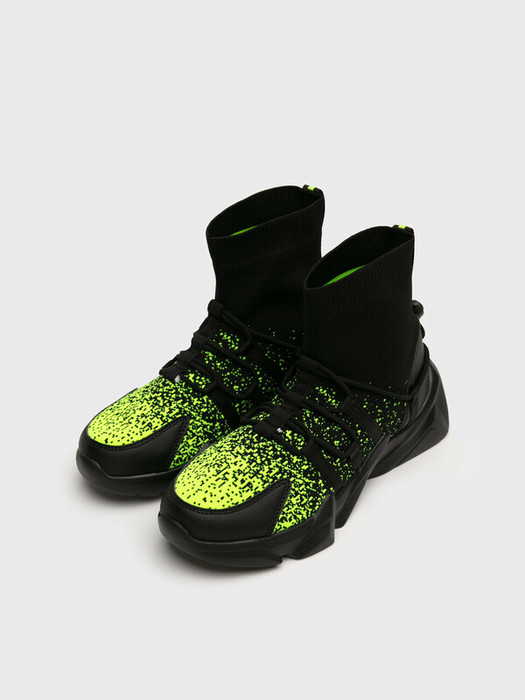Высокие кроссовки-socks (сокс) для мальчика подростка. Верх - вязаный стрейчевый носок. Носочная и пяточная часть имеет дополнительное усиление. Модель имеет дополнительную фиксацию на стопе с помощью эластичного шнурка с утяжкой. Профилированная стелька из свиной кожи с анатомической формой подсводника обеспечивает правильную нагрузку на стопу. Подошва из ЭВА легкая и гибкая. Колодка очень удобная.