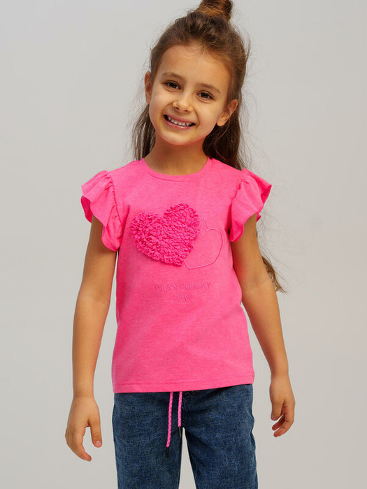 Футболка детская для девочки. Футболка с высоким содержанием хлопка. Рукава-крылышки. Модель выполнена из качественного и приятного на ощупь трикотажа.