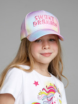 Бейсболка для девочки подростка. Классическая форма с изогнутым козырьком и удобной застёжкой на липучке сзади. Спереди — силиконовая нашивка, а на боковой части и козырьке — крупные графические принты.