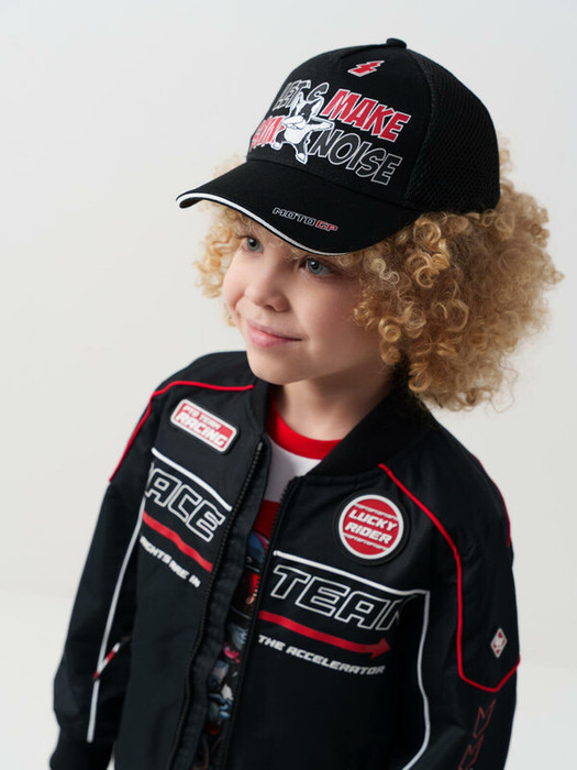 Бейсболка детская для мальчика. Модель выполнена из комбинации хлопкового текстиля и сетки для комфорта в жаркую погоду. Изогнутый козырек, декоративные принты. Застежка на кнопки с регулировкой.