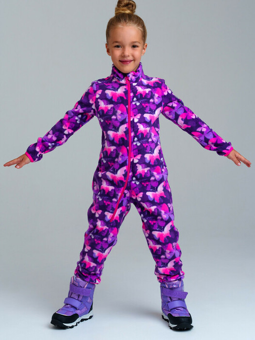 Комбинезон детский из флиса для девочки. Линия NORD ( warm)  – для повседневной одежды второго слоя в холодное время года. Плотность флиса 260 г/м2. Воротник-стойка. Манжеты с эластичной окантовкой. Клапан для защиты подбородка при застегивании молнии. Комфорт посадки обеспечен за счет конструктивной резинки на поясе сзади.   Флисовая поддева идеально подходит под зимний мембранный костюм или комбинезон, в качестве второго слоя в трехслойной концепции одежды для зимы. Основная функция поддевы из флиса – удерживать тепло и передавать пар от первого слоя – термобелья, оставаясь сухим.