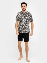 Пижама из качественного и приятного на ощупь трикотажа джерси. 100% хлопок. Футболка силуэта oversize. Брюки comfort fit - свободный крой. Эластичный пояс со шнурком. Карманы в боковых швах.