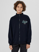 Детская джинсовая оверсайз куртка-рубашка с капюшоном для мальчика. Модель выполнена из светло-голубого денима. Свободный крой, застежка на кнопки. На груди — накладной карман. В оформлении использованы яркие принты. Сзади — декоративные стрелки.