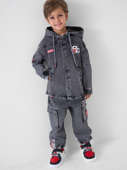 Детская джинсовая куртка с капюшоном для мальчика. Функционально куртка оснащена капюшоном со шнуром, двумя боковыми карманами на молнии и удобной застёжкой на кнопках. Манжеты собраны на резинке для лучшей посадки. Изделие имеет подкладку, подходит для прохладной погоды.
