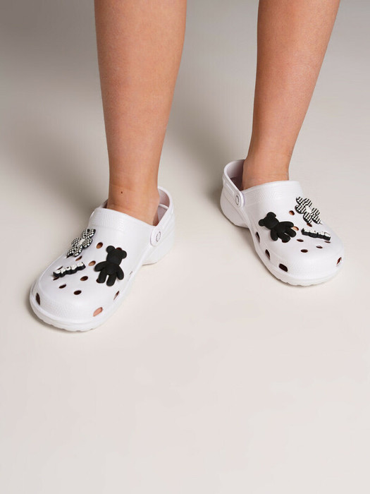 Сабо из облегченного и прочного ЭВА. Материал хорошо моется. Модель украшена объемными джибицами. Форма модели учитывает эргономику стопы. Модель имеет перекидной ремешок для лучшей фиксации обуви на ноге.
