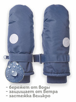 Зимние перчатки с мембраной. Утеплитель – синтепон. Мягкая ладошка из влагостойкого полиуретана. Регулируемая застёжка с липучкой по запястью. Застежка для скрепления пары между собой. Эластичный манжет. Светоотражающие элементы.
