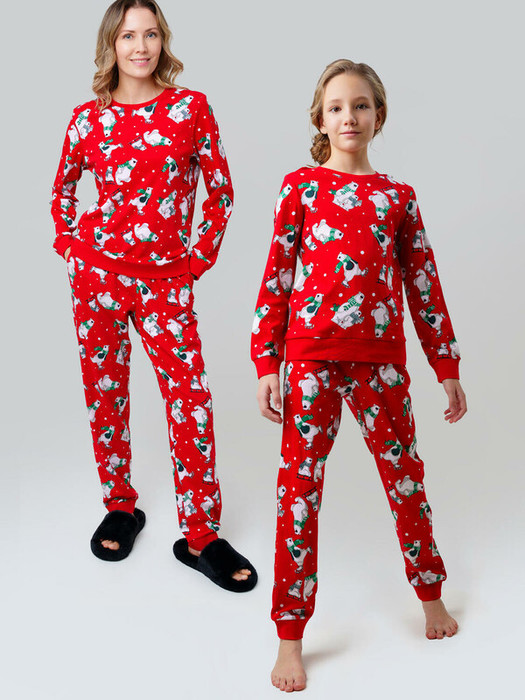 Классическая красная трикотажная пижама для девочки подростка от PlayToday — уют, комфорт и яркое настроение для сна и дома.