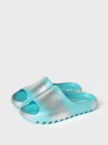 Модные шлепанцы для девочки подростка. Модель для пляжа и бассейна из облегченного и прочного ЭВА. Модель имеет градиентное радужное окрашивание. Материал хорошо моется. Форма модели учитывает эргономику стопы.