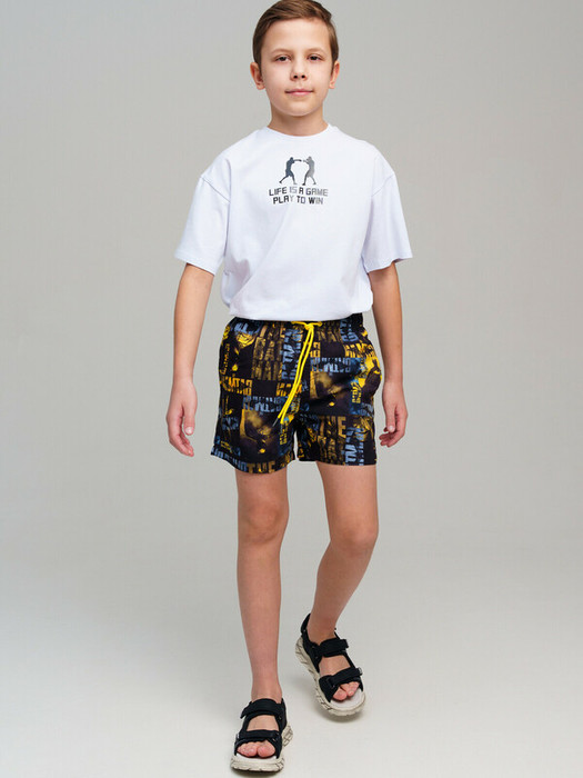 Плавательные шорты из быстросохнущего материала с водоотталкивающей пропиткой для мальчика подростка. Бордшорты для мальчика подростка (swimshort) средней длины. Модель с подкладкой из мягкой сетки в виде трусов, карманы из сетки. Пояс на резинке с дополнительной регулировкой по талии шнурком. Благодаря UF-защите, ткань сохраняет первоначальный вид даже при длительном пребывании на солнце.