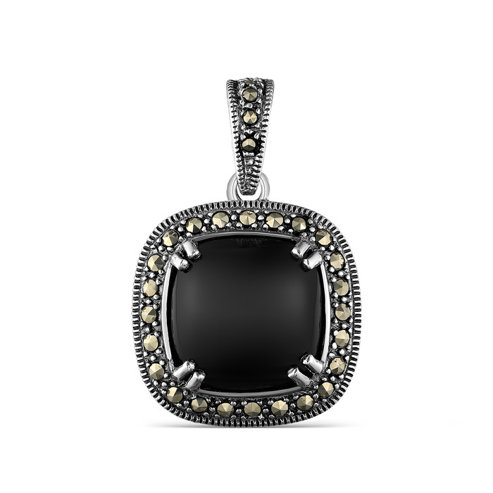 Совместные покупки Уфа Ювелирные украшения и бижутерия Подвески — Подвеска из чернёного серебра с нат.ониксом и марказитами 925 пробы MN00675BX-V2