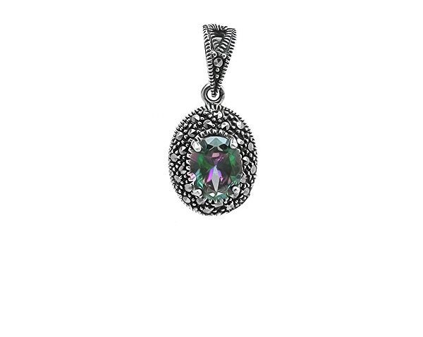 Подвеска из серебра марказит, мистик кварц, SL-AGA3