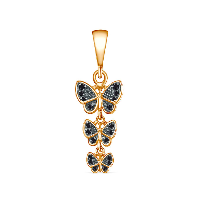 Подвеска из золочёного серебра с чёрной шпинелью и чёрным родированием - Бабочки