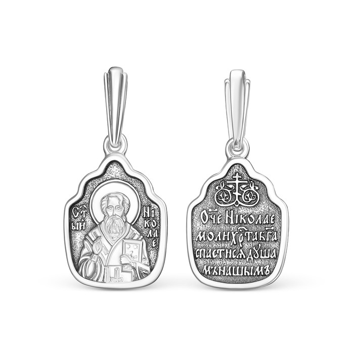 Подвеска религиозная из чернёного серебра - Святой Николай 925 пробы К3-317ч