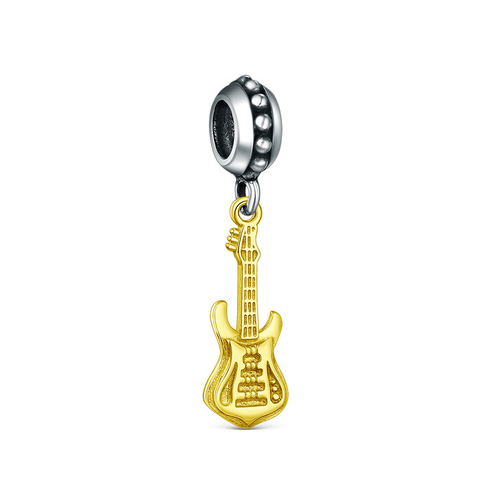 Подвеска-шарм из чернёного серебра с золочением - Гитара 620052чз