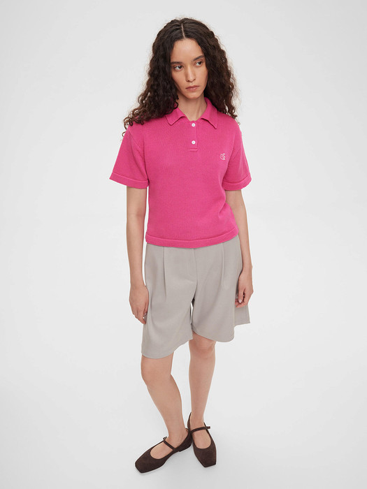 Совместные покупки Уфа Женская одежда Джемперы, свитеры, водолазки — Поло с коротким рукавом из хлопка с вышивкой, розовая фуксия