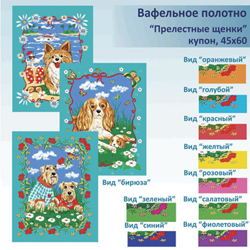 Совместные покупки Уфа Товары для дома и дачи Полотенца — Полотенце 45х60, КУПОН, вафельное полотно, 100 % хлопок, Прелестные щенки (сини