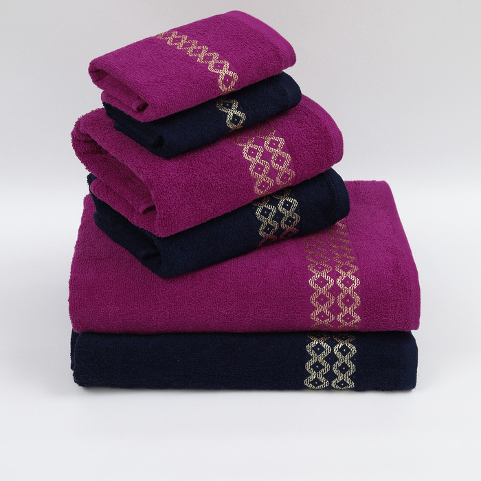 Полотенце махр. Блеск набор 2917 Тёмно-синий+Ярк.фуксия 6 шт, 30*60,50*80,70*130