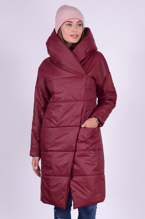 Ультрамодное демисезонное женское полупальто-"одеяло" с большим шалевым капюшоном, удлиненным по переду низом и асимметричной застежкой на потайные кнопки. При желании, капюшон легко трансформируется в воротник-стойку. Карманы расположены в стежке . Рост фотомодели 173 см Длина пальто по спинке ок.98см. Длина рукава от горловины ок.71 см. Рост 170 см Состав: полиэстер - 100%, утеплитель: Air Twin Light 100 г/m2 цвет: бордо