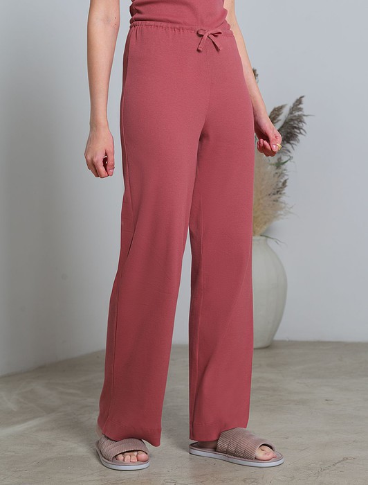 Состав: 95%Хлопок 5%ПУ Плотность: 150 Г/м2Прямые брюки темно-кораллового цвета с поясом на тонкой резинке из фактурного трикотажа в рубчик созданы для вашего ежедневного комфорта. Особенность полотна - трикотаж кашкорсе удивительной мягкости, намного мягче стандартных вариантов, подходящий для расслабленных домашних и пижамных образов. Хлопок обеспечивает максимальный комфорт даже в течение длительного времени и позволяет коже дышать, а эластан дарит безупречную посадку на различные типы фигуры, в том числе и большие размеры и позволяет свободно двигаться. Выбирая эти легкие штаны, вы получаете удобство и стиль в одном решении, ведь домашние и повседневные задачи будут проходить с максимальным комфортом. Красивые брюки сохранят свой внешний вид даже при активной эксплуатации, ткань не теряет форму. Брюки подходят для создания уютного образа на каждый день, легко сочетаются с другими предметами гардероба для прогулок и уютных вечеров. Приятная рельефная фактура ткани и аккуратный дизайн создают баланс между стилем и удобством, что особенно важно при выборе повседневных брючек.