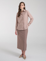 Рукава блузки объёмные, на манжетах выполнена застежка на пуговицу. Рост фотомодели 175 см. Размер у фотомодели – 44.